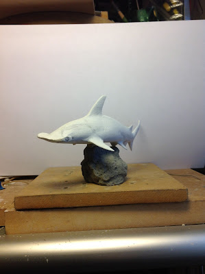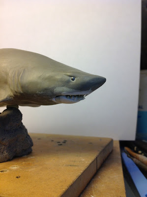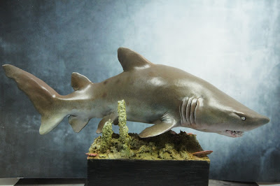 Ci-dessous la version peinte d'un tirage résine de mon requin taureau (Carcharias taurus)