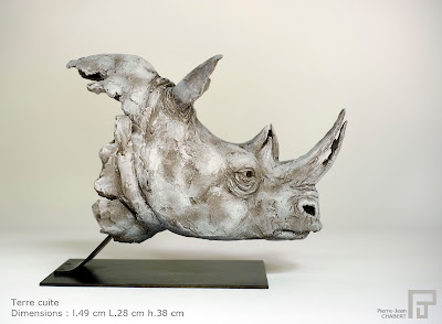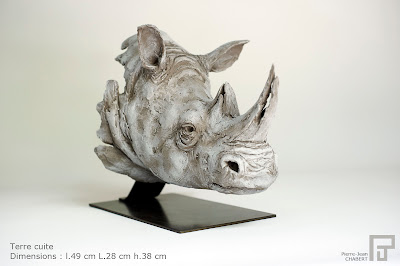 Je n'avais pas encore posté les photos de ma tête de rhinocéros en terre cuite.